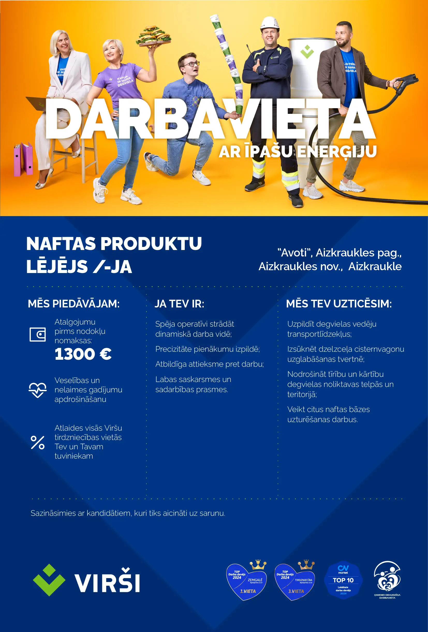 Ja Tev ir kādi papildus jautājumi, raksti uz darbs@virsi.lv  vai zvani uz (+371) 28019282, (+371) 28630007